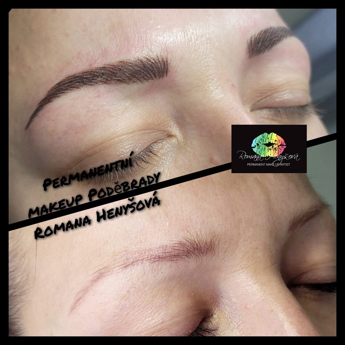 Ukázky prací .... focené před a bezprostředně po aplikaci. Bezprostředně po aplikaci je PMU vždy výrazný, po vyhojení a odpadnutí stroupků (cca 10 dní) všechny aplikace získají jemný a přirozený odstín. Kompletní ustálení pigmentu a výsledný efekt zabarvení trvá 4-6 týdnů.